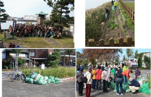 20141116 宮の渡し公園及び堀川護岸清掃 冬のおとずれを感じさせるような寒い朝となりました。 清掃時間には気温も上がり体を動かしての清掃には最適になりました。 本日は5団体(会社関係:4 鯱城学園卒業生)及び個人参加者合わせて111人+会員4名 合計115…